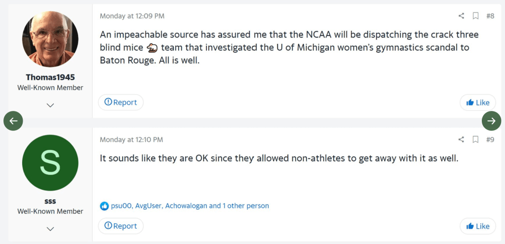 #27 – These posts were from Penn State fans upset over what they deemed to be inadequate NCAA punishments over sexual assault allegations. Think about it….