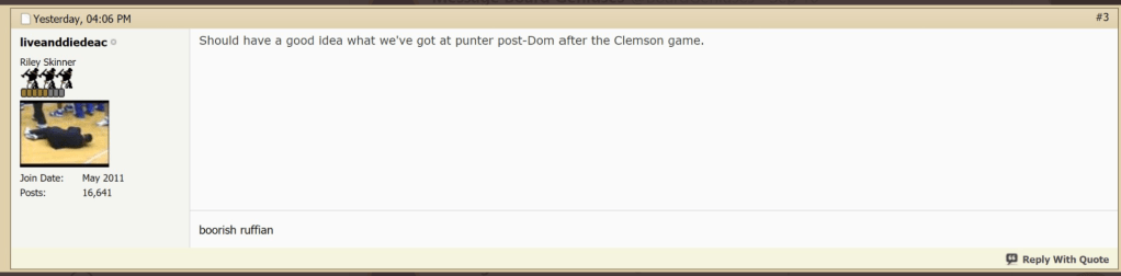 I’ve compiled, what I found to be, the top posts of the 2020 College Football Season. As with the message board rankings, there was no objective criteria, these rankings are entirely subjective. The views in the posts are not shared by me, they are the views of the individual poster. Below are posts Nos. 26-50: