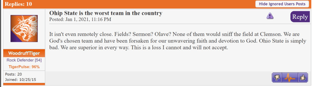 Clemson fans quickly forgot that they had just been boat-raced by Ohio State:
