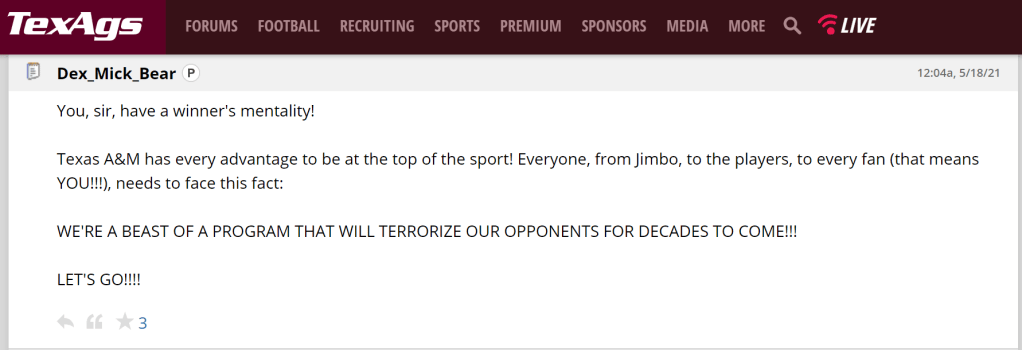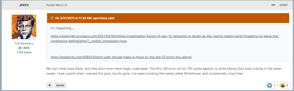 A Longhorns fan started to express his doubts about their ability to win the Big12 and then lost it…..