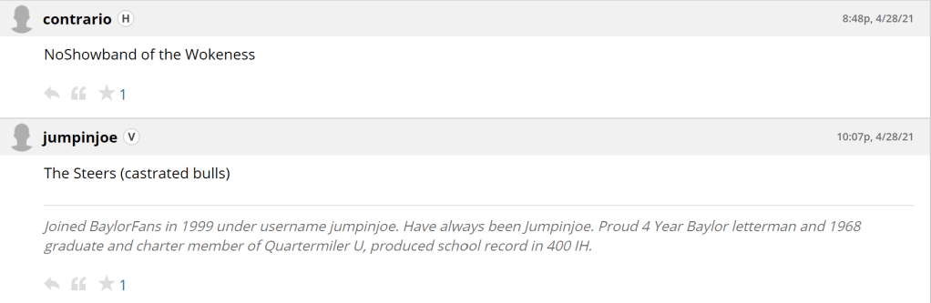Texas decided to create a second marching band that would be exempt from playing The Eyes of Texas, Baylor fans helped them come up with names for this second band: