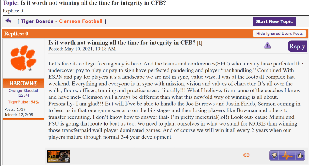 Likewise, Clemson will take the moral high ground when it comes to recruiting: