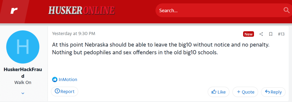 Husker fans, however, are not completely comfortable with the company they keep in the B1G: