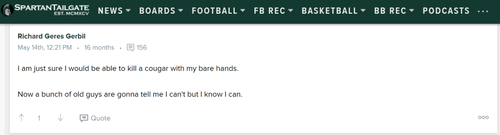 And a Michigan State fan can beat up a cougar with his bare hands: