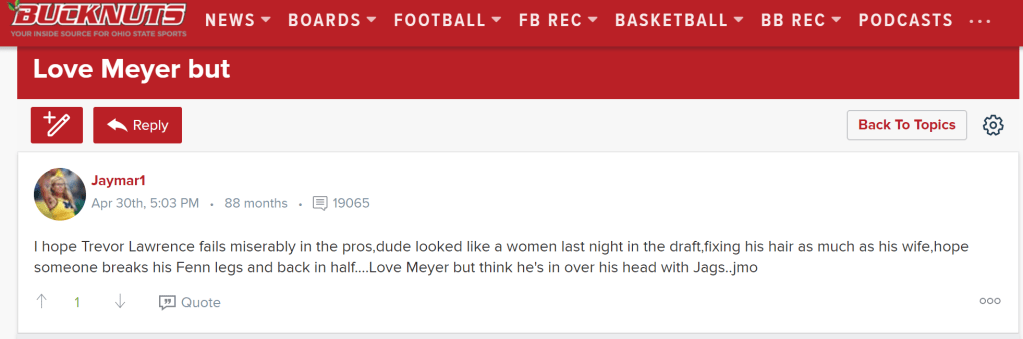 Trevor Lawrence was drafted No. 1 overall by the Jaguars and one Ohio State fan was not a fan of his look: