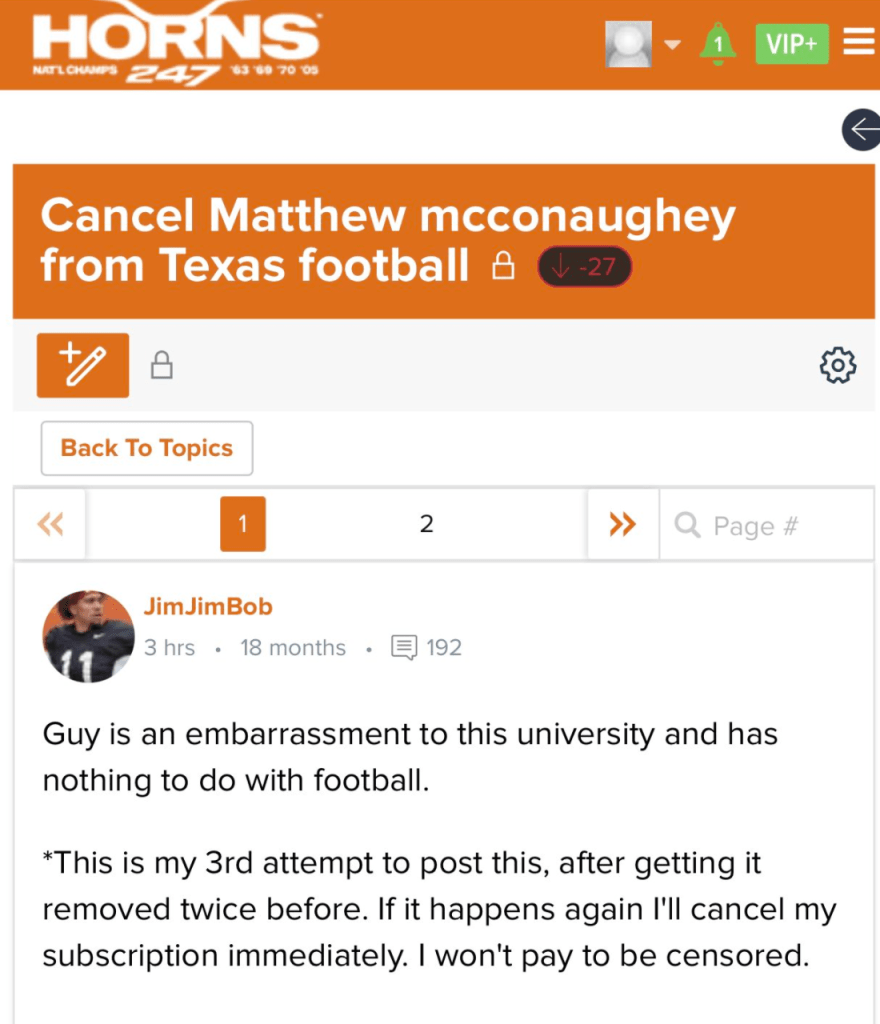 24. Texas fan wants to cancel Matthew McConaughey while being upset that he himself was cancelled.