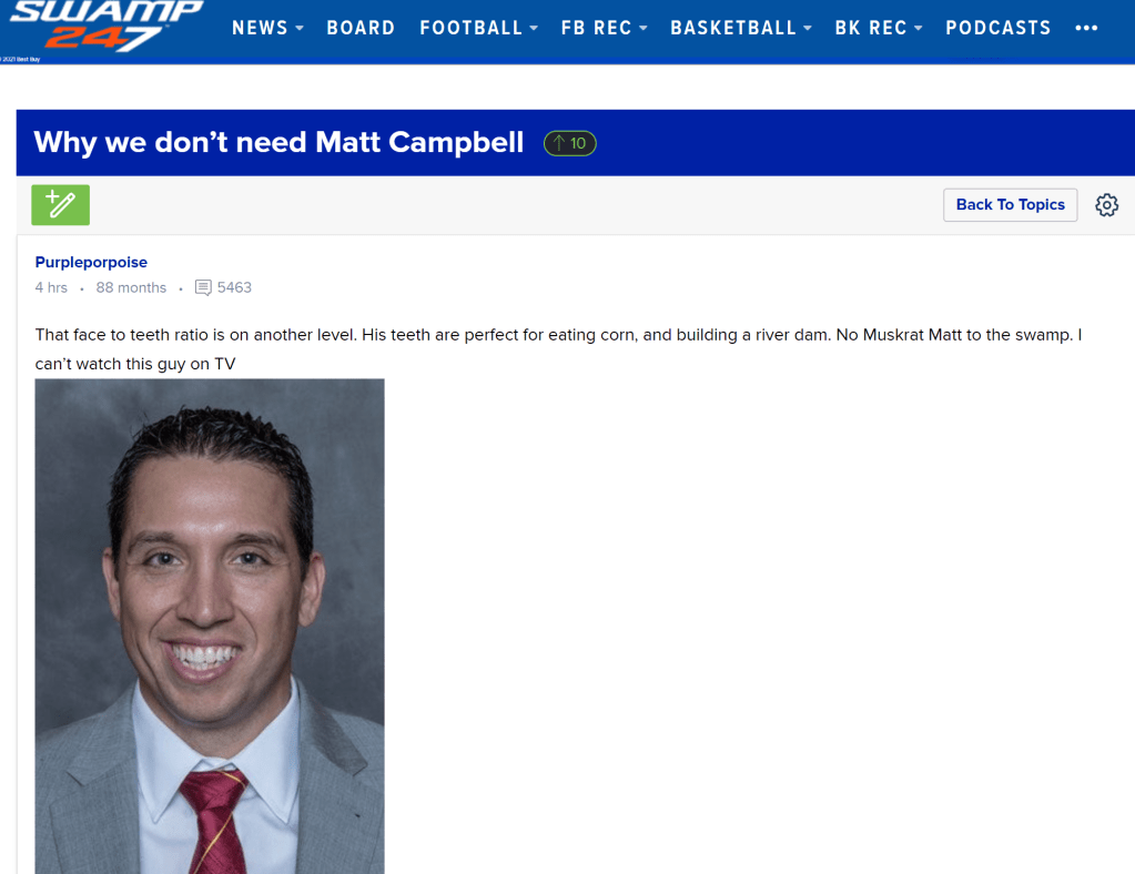 6. Matt Campbell’s face to teeth ratio kept him from getting the Florida job.