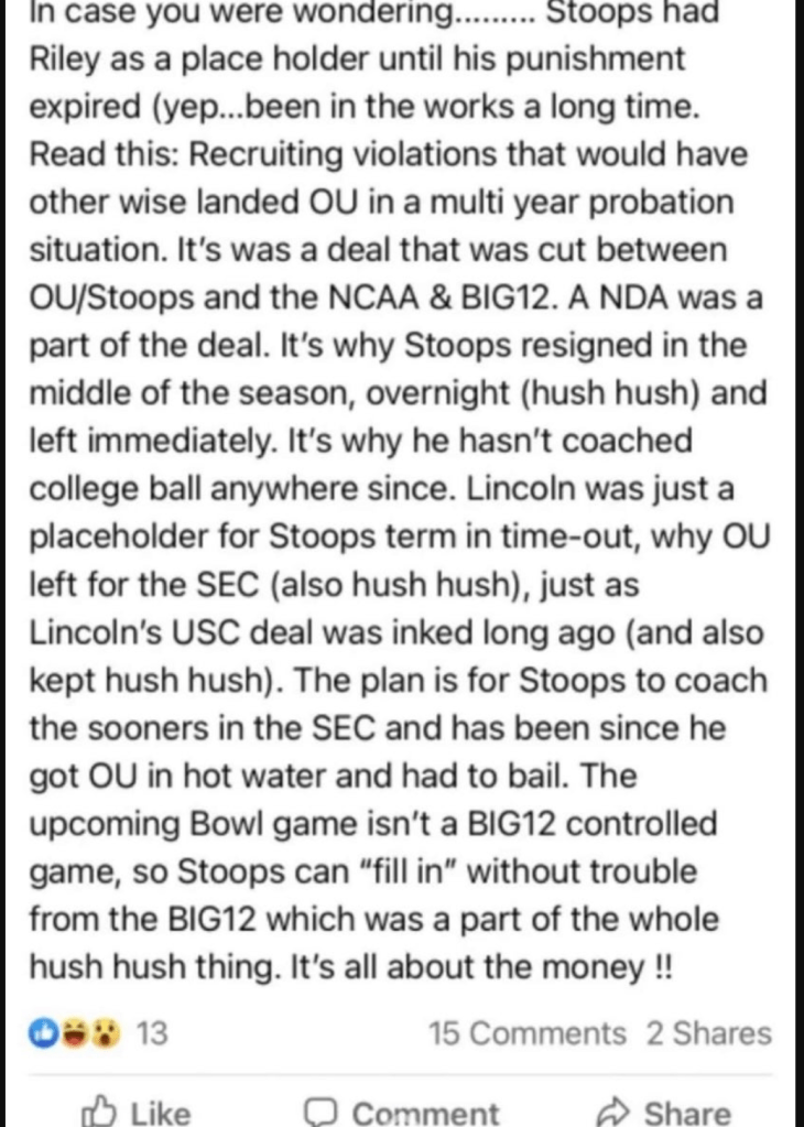 11. Oklahoma fan is struggling with how to explain Lincoln Riley’s devilish work to his children.