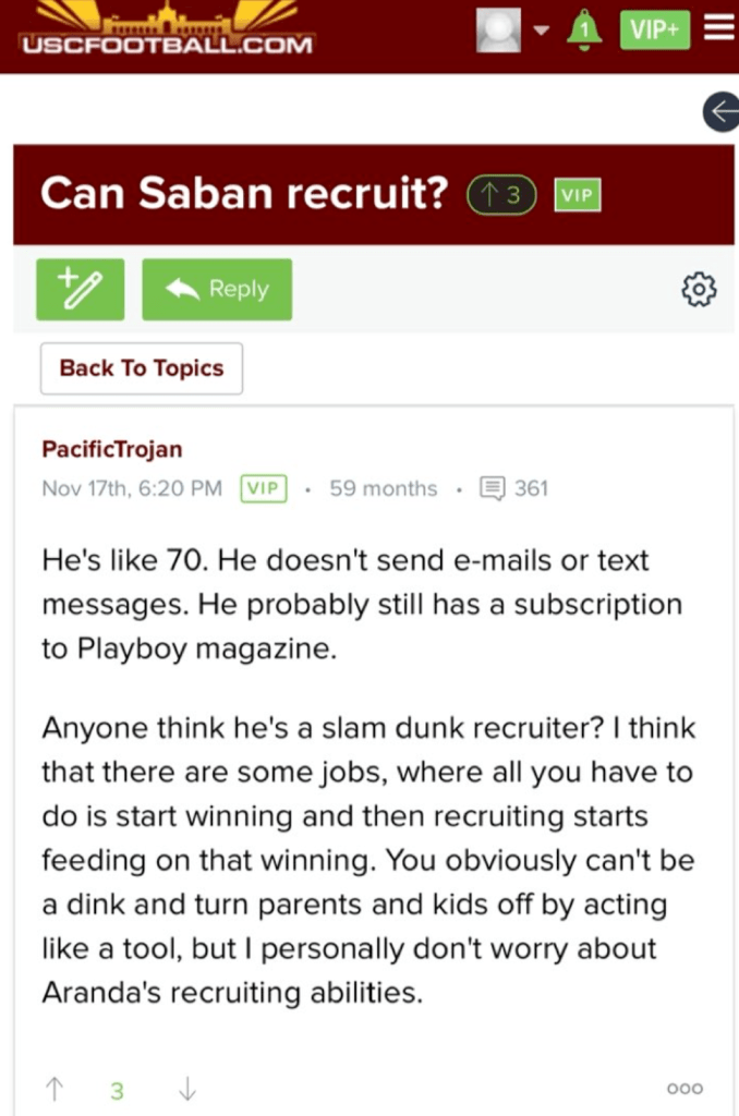 20. USC fan wonders if that Nick Saban guy can recruit.