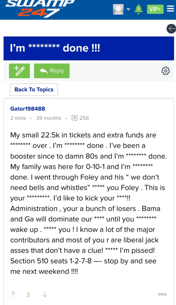 3. Florida fan challenges liberal jack asses to come up to his $22.5k seats and fight.
