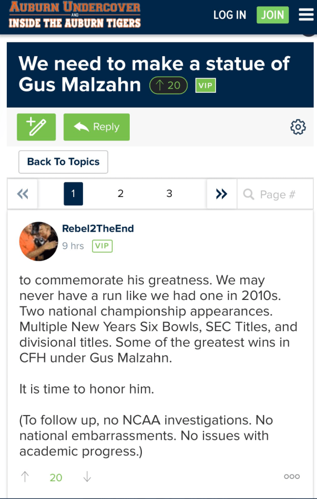75. Auburn fan wants to build a Gus Malzahn statue.