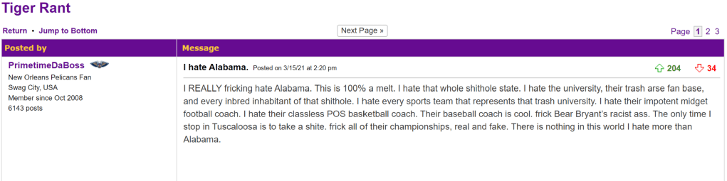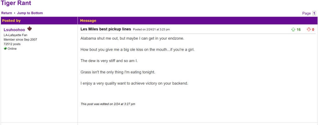97. LSU fan wants a coach that can recruit non-pot smokers.