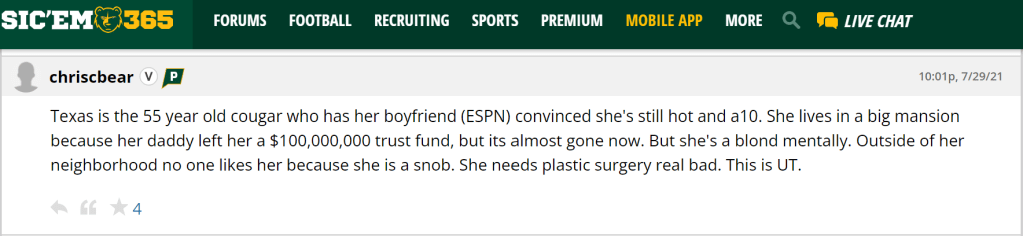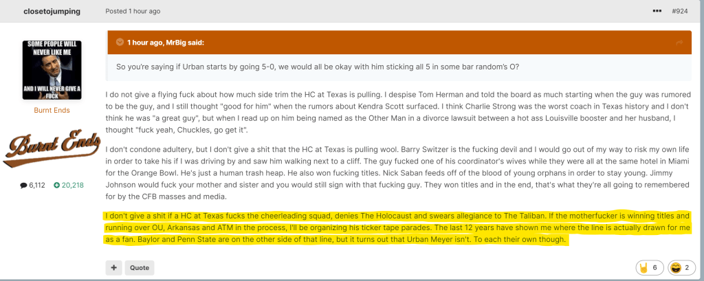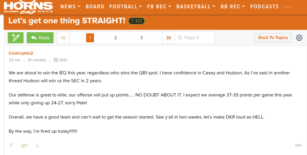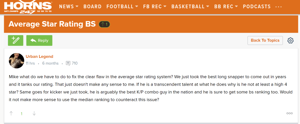 91. Texas fan was upset that a long-snapper didn’t increase their recruiting rankings.