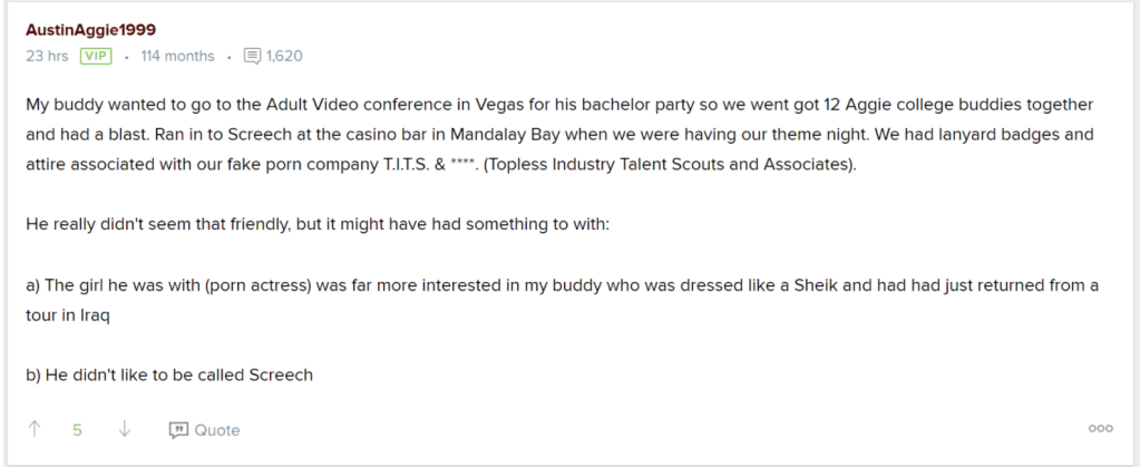 55. Texas A&M fan had a great story about Screech from Saved by the Bell.