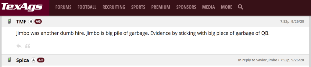 69. Texas A&M fan wasn’t a fan of Jimbo.