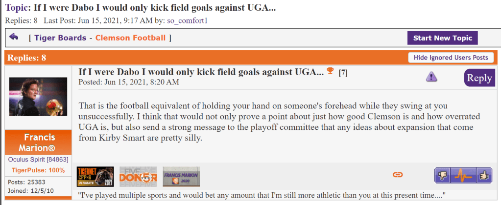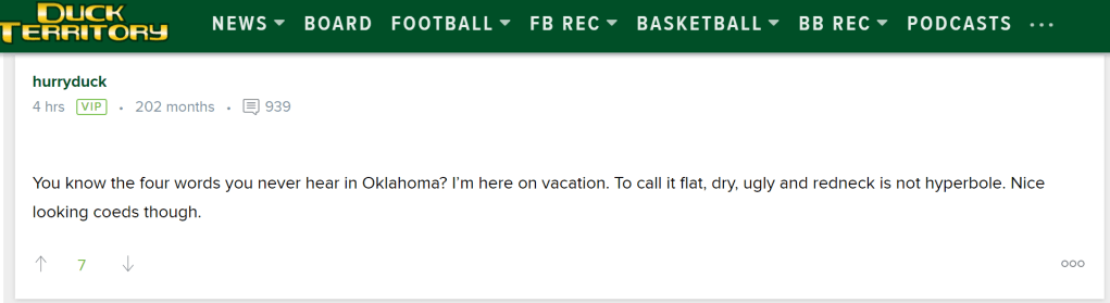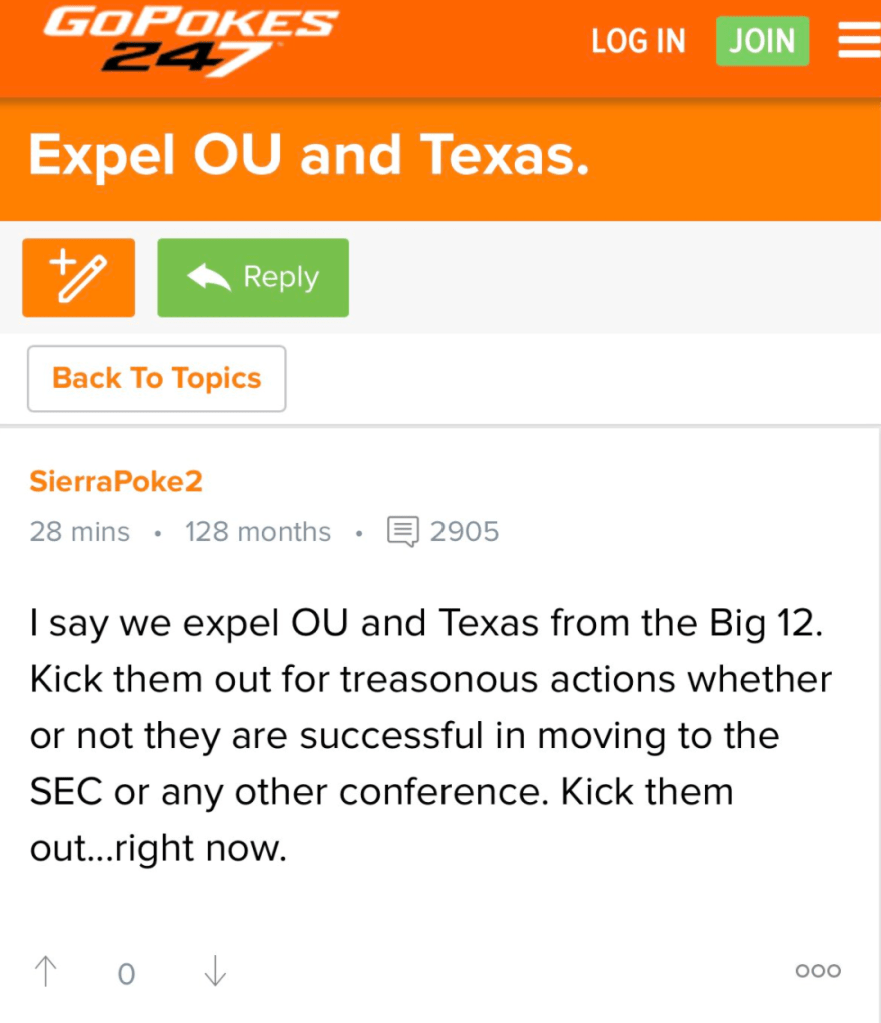 88. Oklahoma State fan wanted Texas and OU evicted from the Big12 for treason.