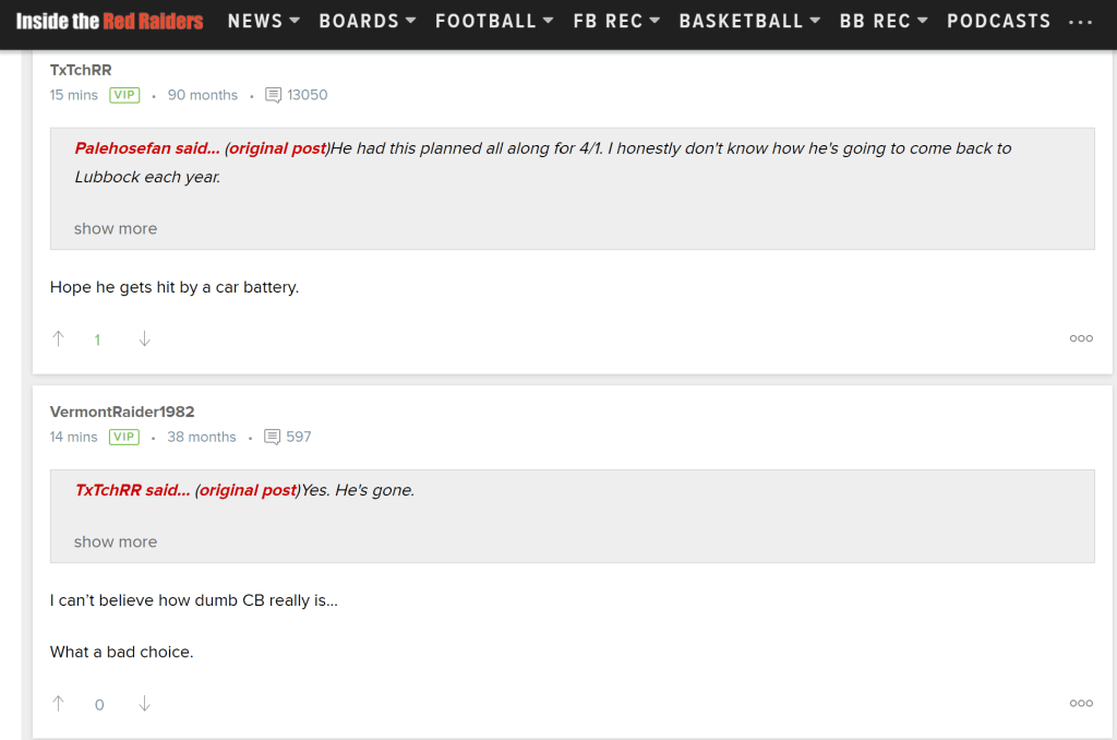 94. Texas Tech fan handled Chris Beard’s move to Texas well.