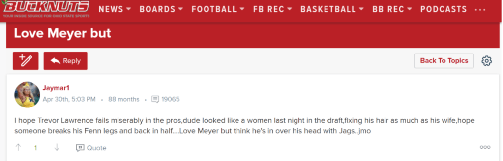 36. Ohio State fan is not a fan of Trevor Lawrence’s hair.