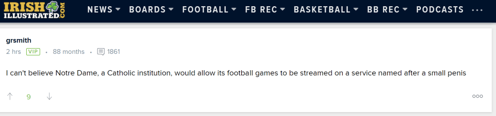 28. Nothre Dame shouldn’t affiliate with Peacock.