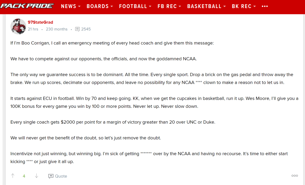 8. NC State fan wants to implement a new strategy of trying to win every game.