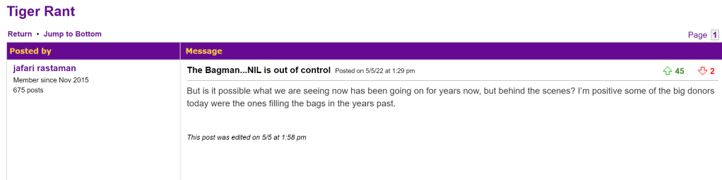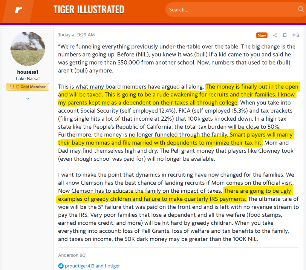 11. Clemson fan gets deep into the weeds on the tax implications of NIL money.