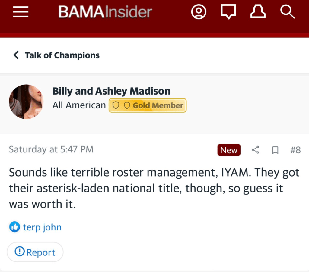 10. Alabama fan thinks Georgia’s title should come with an asterisk.