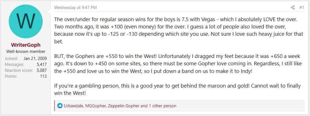 This is what I’ve got too, WriterGoph. This should be the season that you get over that Iowa hump. If not, I promise that you’ll hear from me on here soon.