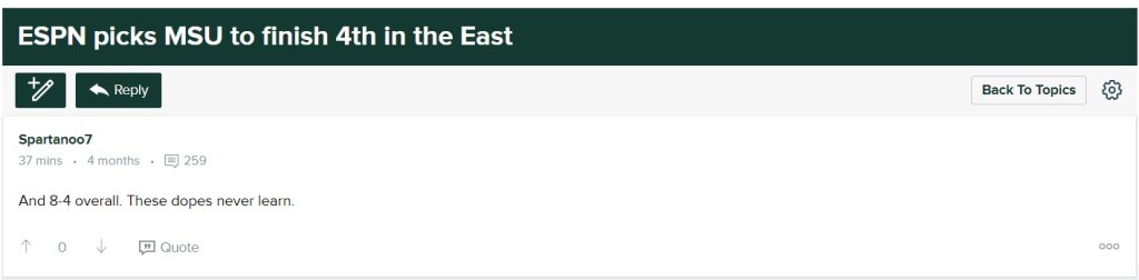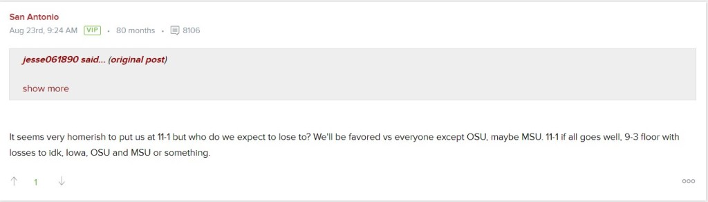 I’ve inadvertently been lumped in with ESPN. Thank you for that. Still, without their Wolverine killer, Kenny Walker, I don’t think a relatively lucky 2021 team will be able to repeat the 10-win season. [Waits for someone to tell an Iowa joke].