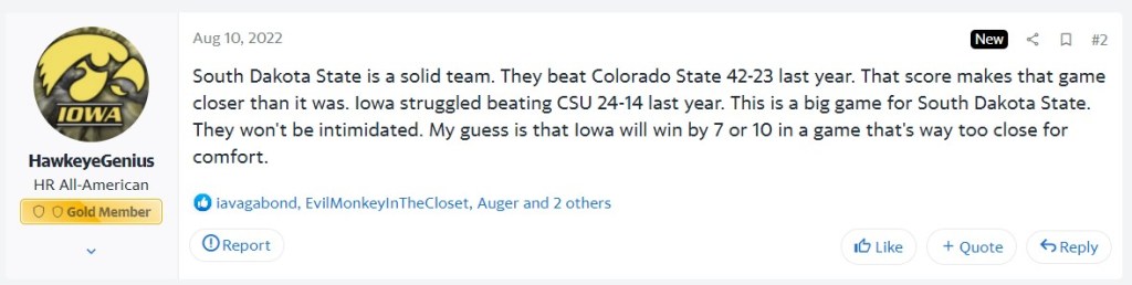 Fellow Hawkeye fans, if you’re worried about South Dakota State, you might not want to look at the crossovers this year.
