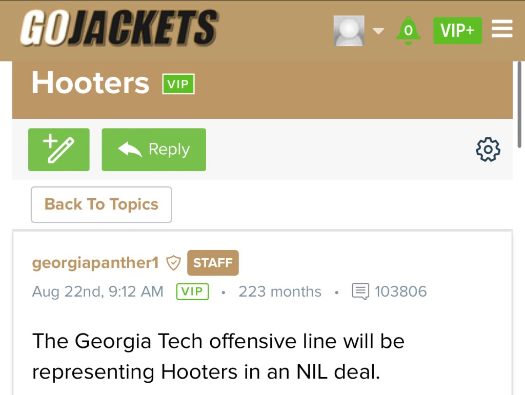 Say what you will about Geoff Collins’ performance with the Yellow Jackets on the field, but there’s only one coach in the world whose offensive line has a NIL deal with Hooters. That has to count for something among those who don’t have a reserved booth at Beef O’Brady’s.