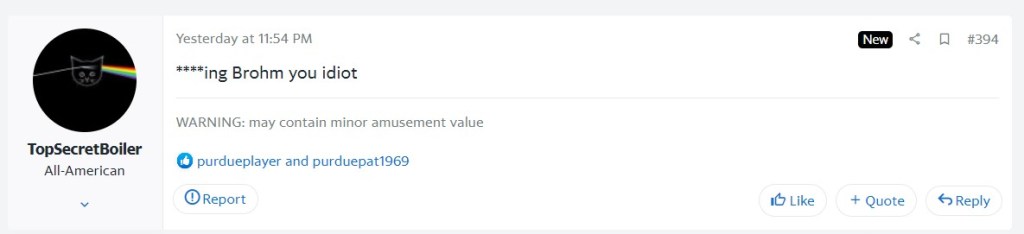 Blunders aside, it is unlikely that Brohm’s seat is even warm. Let’s not forget that this guy did get Purdue their highest win total since Kyle Orton was their QB in 2003.
