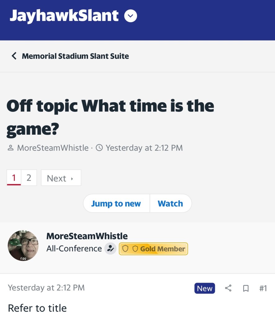 Nonparticipant Of The Week: Kansas fan asking important questions in the football forum. Basketball isn’t far off so keep holding on Jayhawks folks.