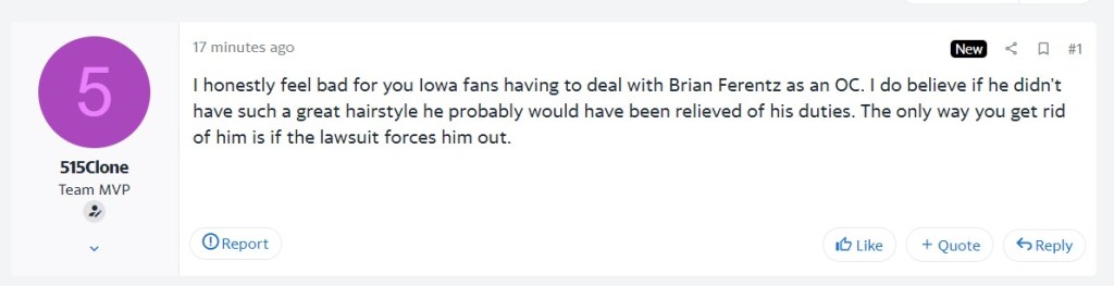 Still, making a second appearance in this segment in two weeks seems to indicate that this is going to be a long season for my fellow Hawkeye fans.