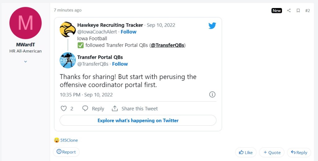 I included that last one not for the humor but because it is telling. Solid to great skill players transferring out and finding success elsewhere is not new for the Iowa Hawkeyes. It’s a problem at the top and you really only have two options: get a new head coach or accept the negatives with the positives. I don’t really know which camp I’m in as a fan of a team whose offense functions like Chicago traffic.
