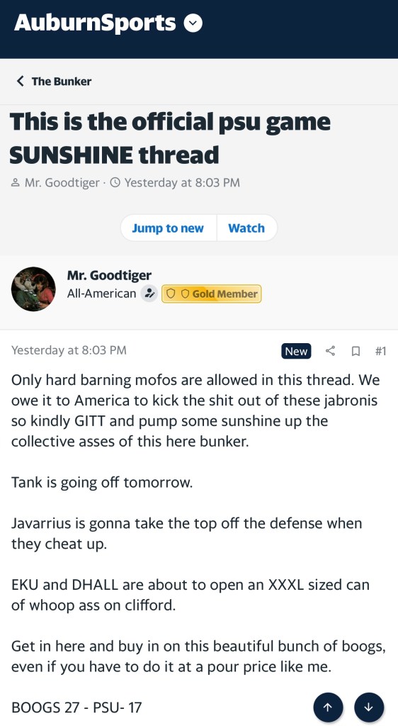 I think it’s close until Penn State starts to pull away. If that happens, the Harsin haters will crow about how they’ve been right all along and talk of the boosters will kick up. It’s like that old show that no matter how many times you’ve seen it before, it’s still fun to watch. Meanwhile, a Penn State loss leaves James Franklin looking for a team to flirt with later.