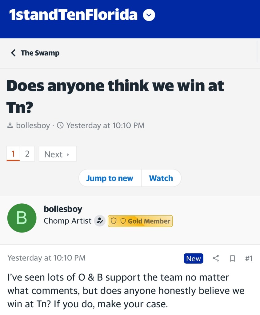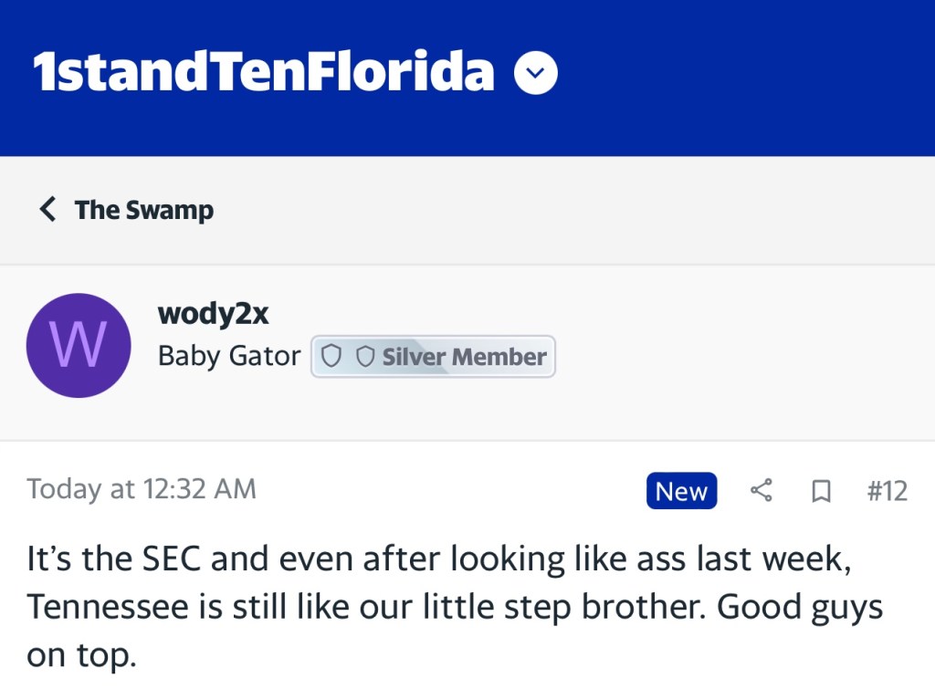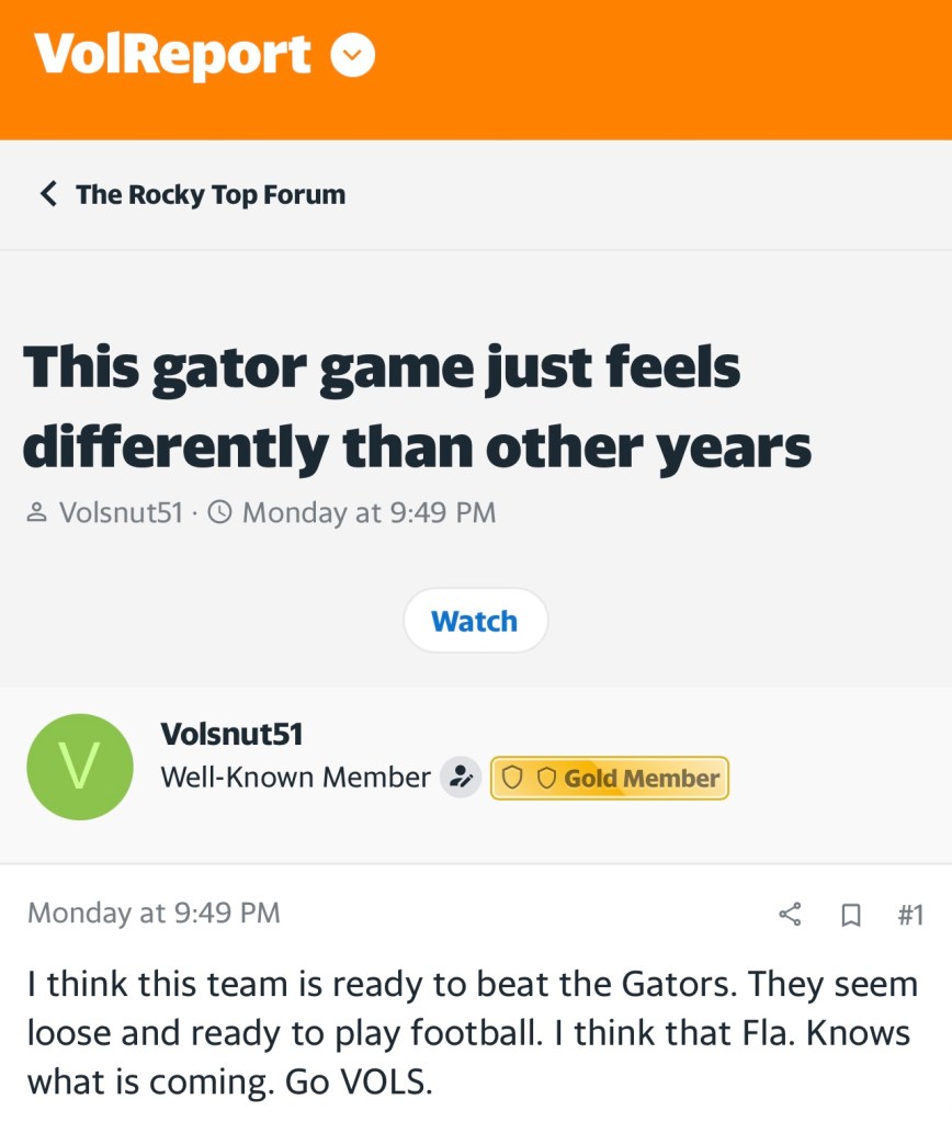 Tennessee sure seems primed for a win but some Florida fans aren’t having it. Let’s see what the boards have to say.