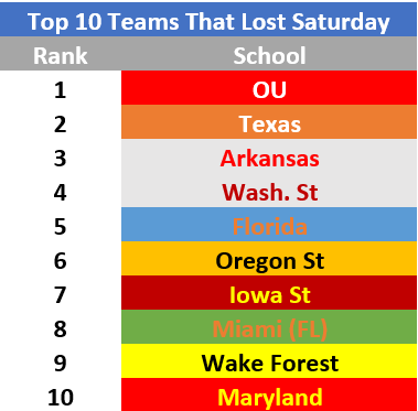 Below are the top 10 teams that lost on Saturday.