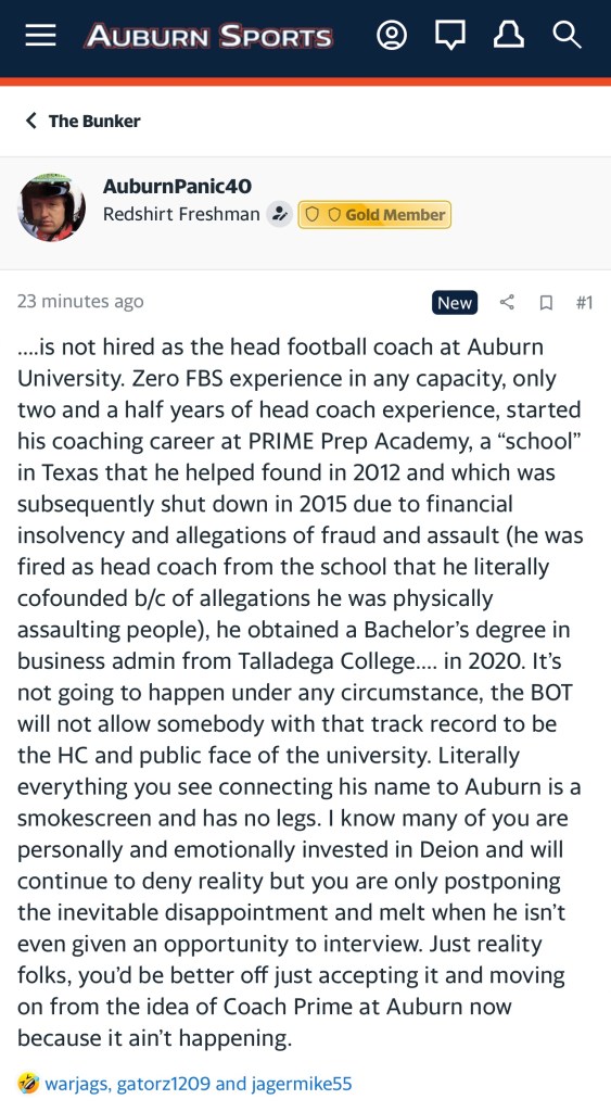 Over in Auburn, things are fully off the rails and the Bryan Harsin experiment is all but officially over. Some reporters who cover the team have provided their subscribers some inside info that makes it obvious.