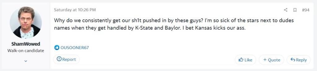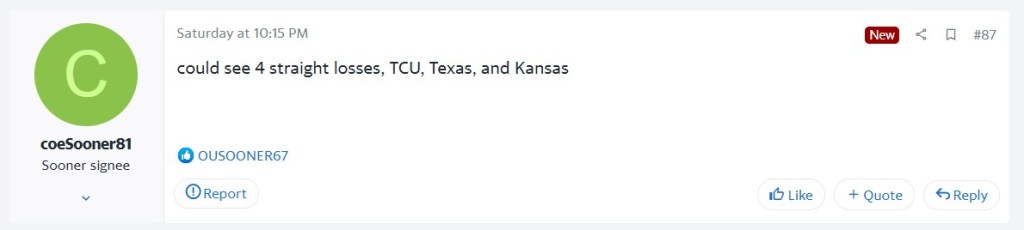 I tried to tell you all to temper the expectations for Oklahoma, but you, specifically Sooner fans, did not listen. Oklahoma is still a good team in a conference without an elite team, so all is not lost. For your sake, however, don’t look at what your former coach is doing in LA.