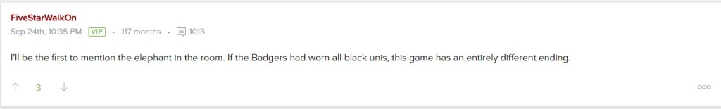 We’re split between the stage of firing our coach, him voluntarily stepping down and blaming the uniforms, Badger fans. Unfortunately for you folks up north, it makes sense.