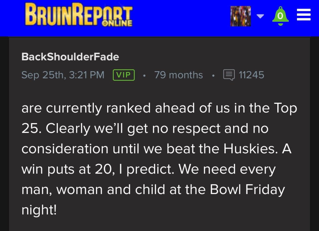 Things are going so well in the 5th year of the Chip Kelly-era that undefeated UCLA fans are expecting roughly 25,000 inside the Rose Bowl for their upcoming game vs undefeated conference foe Washington. While that number might seem low, this is almost double what UCLA’s basketball arena holds. 25,000 at a game would be quite an accomplishment for the Bruins.