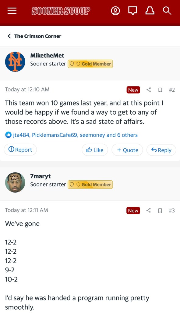 The Brent Venables hire was celebrated in Norman but the Oklahoma Sooners have as many losses in five games this year as they did all of last year. Personally, this reminds me of when Alabama hired Mike Shula: the program, finding itself in a tough situation, turns to longtime assistant coaches with ties to the college and talks itself into believing they’re just the man for the job despite facts staring you in the face. There are still those holding out hope but many, many more are realizing the totality of the situation in which they find themselves.