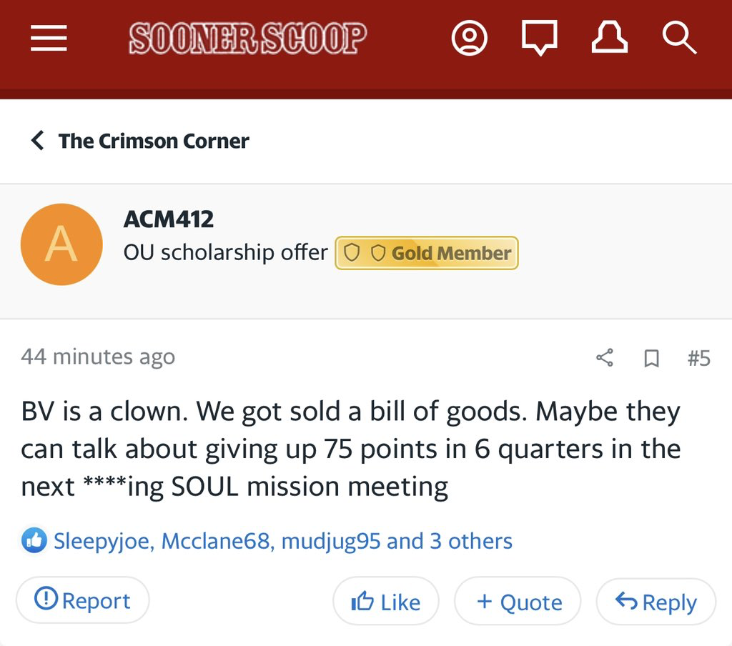 But there’s still that feeling in most guts of Sooner Nation. That overwhelming feeling that Oklahoma fans still miss their ex, Lincoln Riley. And could you blame them? The hype and performance that Lincoln Riley has brought to USC through 5 games has been nothing short of inspiring. That mixed with Alex Grinch’s defense ranked 31st in scoring defense in the nation is a cocktail of tears and desperation for Sooner fans.