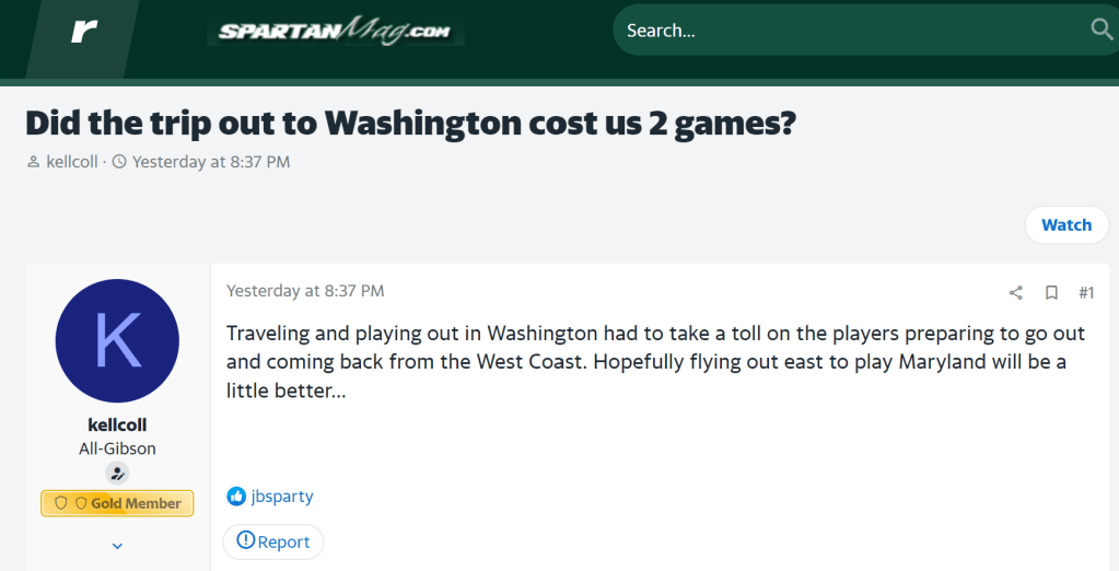 22. Michigan State suffered jet lag for a week after their long flight home from Seattle.