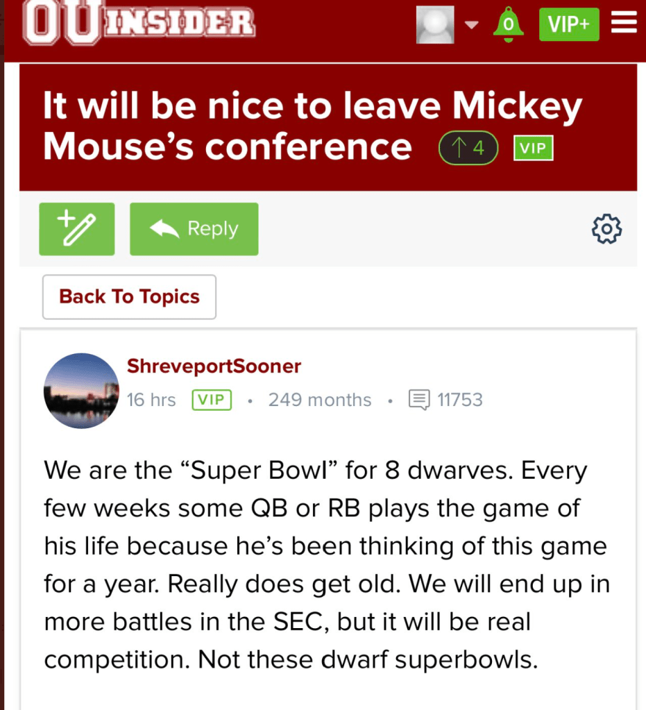 10. Oklahoma is sick of playing in all of these dwarf super bowls.