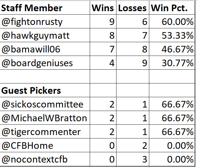 I watched LSU struggle against a terrible Auburn team last week, who could not give away a game more times than they did. I’m also a bit nervous about the mobility of Jayden Daniels coming off of a knee-to-knee hit, despite no structural damage to it. Tennessee’s offense is too strong for the Bayou Bengals.