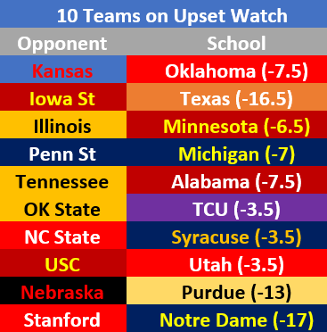 We’ve got some teams on upset watch, ranging from somewhat serious to moderately serious to super serious. We’ll hold on to the Al Gore super cereal upset watch for games later on in the year.