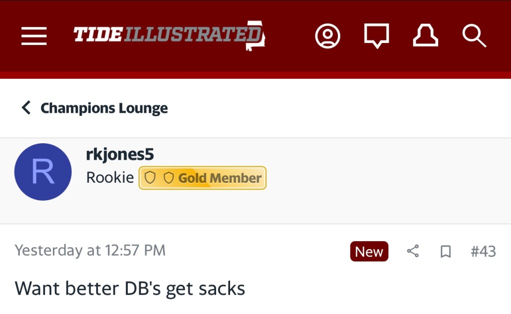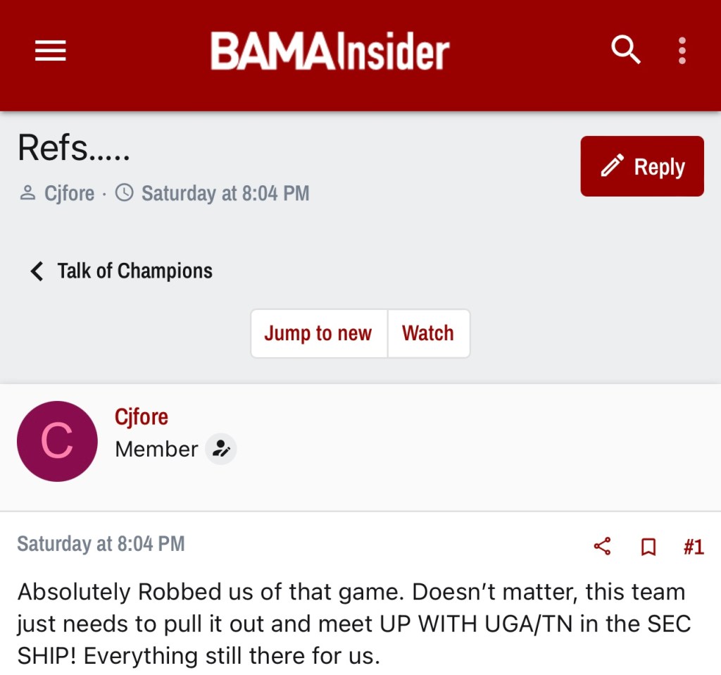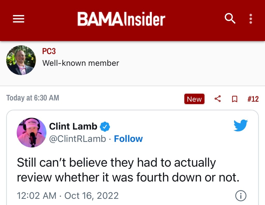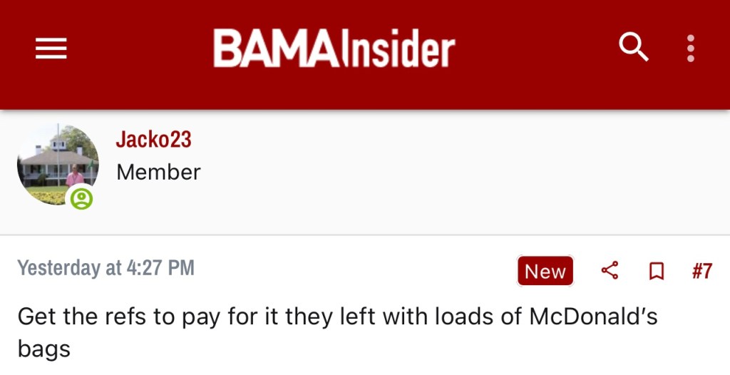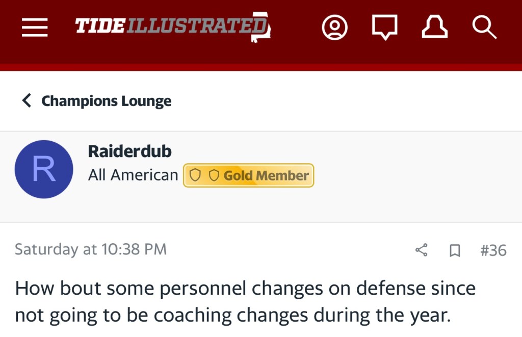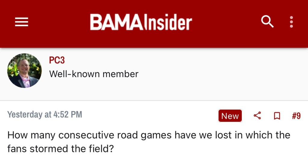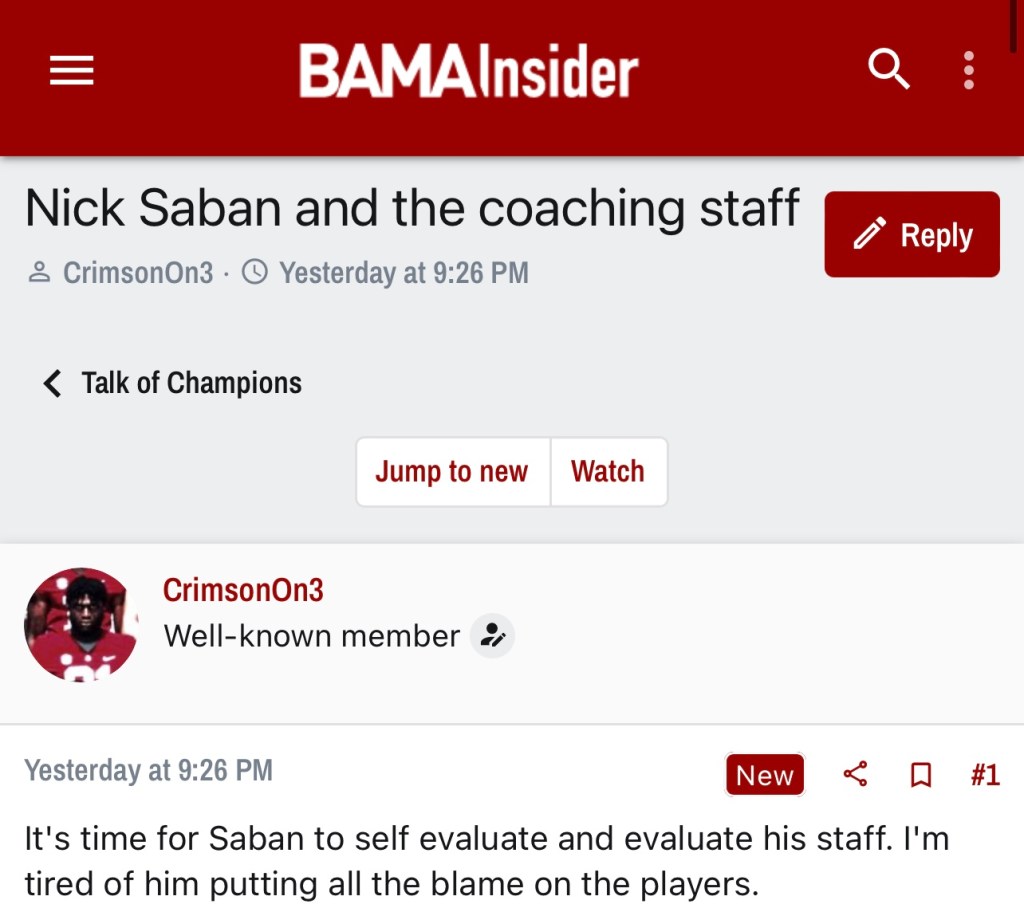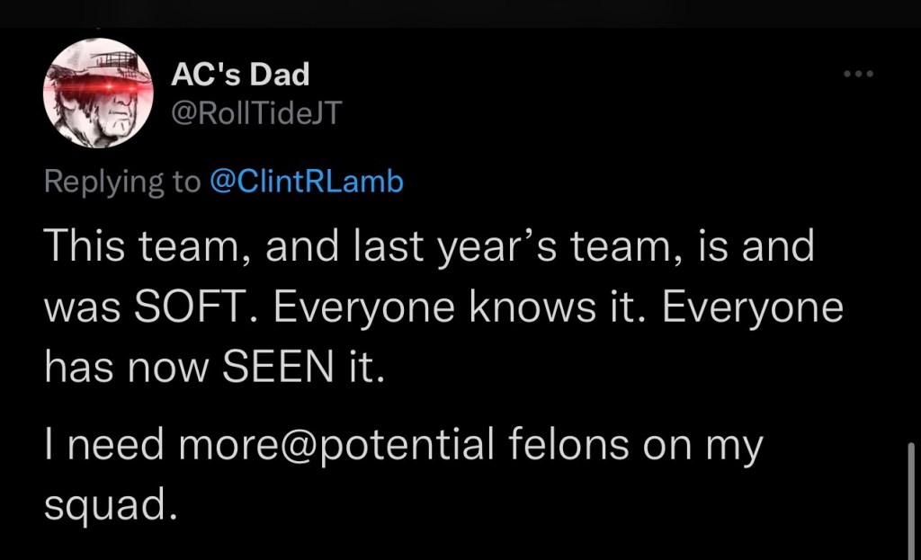 In Saban’s previous 15 seasons at Alabama, the Crimson Tide has only gone undefeated twice. So hiccups aren’t foreign but it’s wild to me that so many are questioning every method after something relatively normal happens. By the amount of blaming happening in the boards, it may help Bama fans to know they aren’t the only big losers from Saturday.