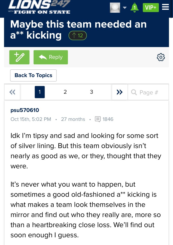 My article from last week highlighting the games I thought would be the best of the weekend intentionally didn’t mention the Penn State-Michigan game because a James Franklin Penn State team failed miserably in a big game like I thought they would. Some fans are trying to cope the best they can.