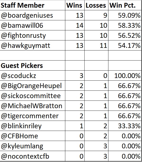 I’m weirded out that Illinois is ranked. I fully support it though. I like the Illini and I have no idea why. I think they’re an excuse to like the orange-blue combo because I also like Virginia. When you live in Alabama with young kids, your orange-blue combos are Auburn and Blippi so it’s the Devil’s colors. No offense Blippi but the dude’s been on my TV constantly, even on Saturdays. It also helps Illinois that its coach is Bret Bielema. The guy seems fun according to social media pics. Respect my Big Boy King. Nebraska is in the dumpster too so I’m going with Illinois.